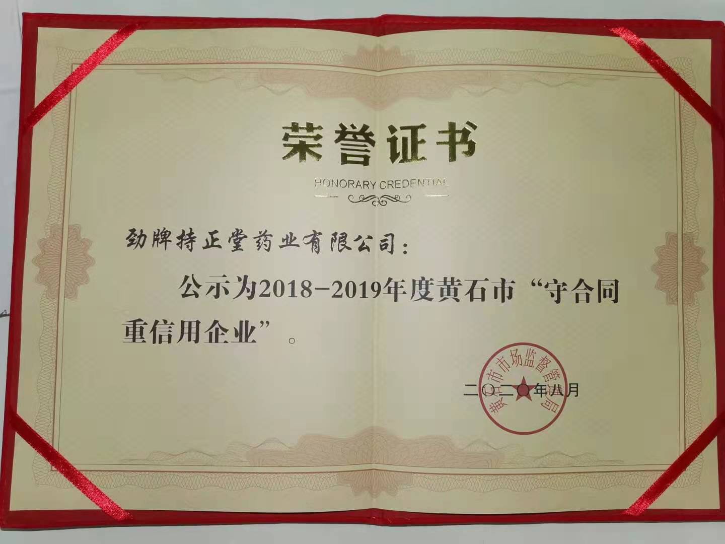 黃石市2018-2019年度“守合同重信用”企業
