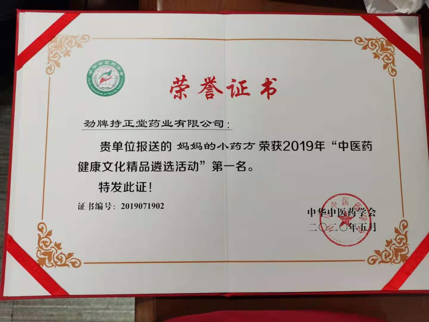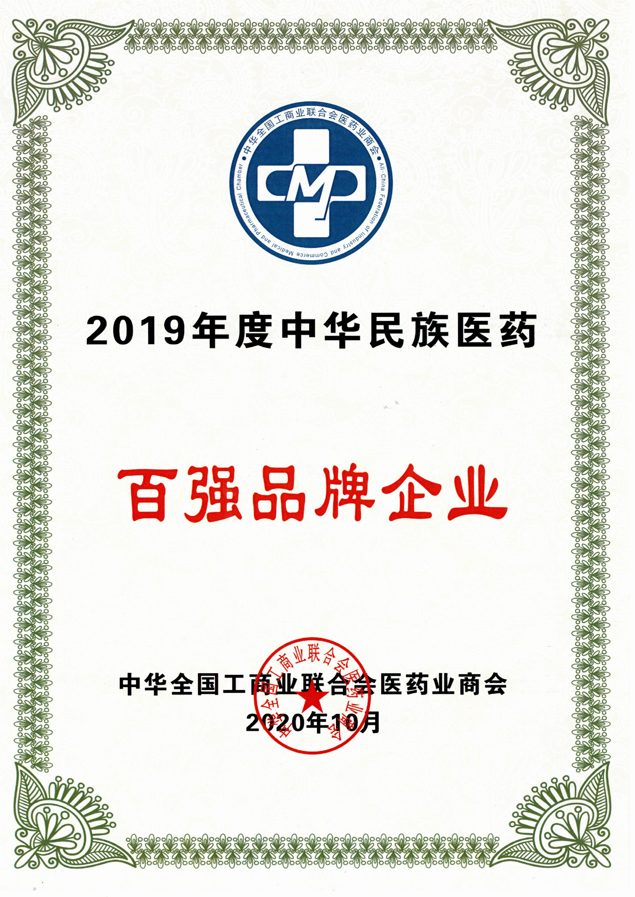 2019年度中華民族醫藥百強品牌企業