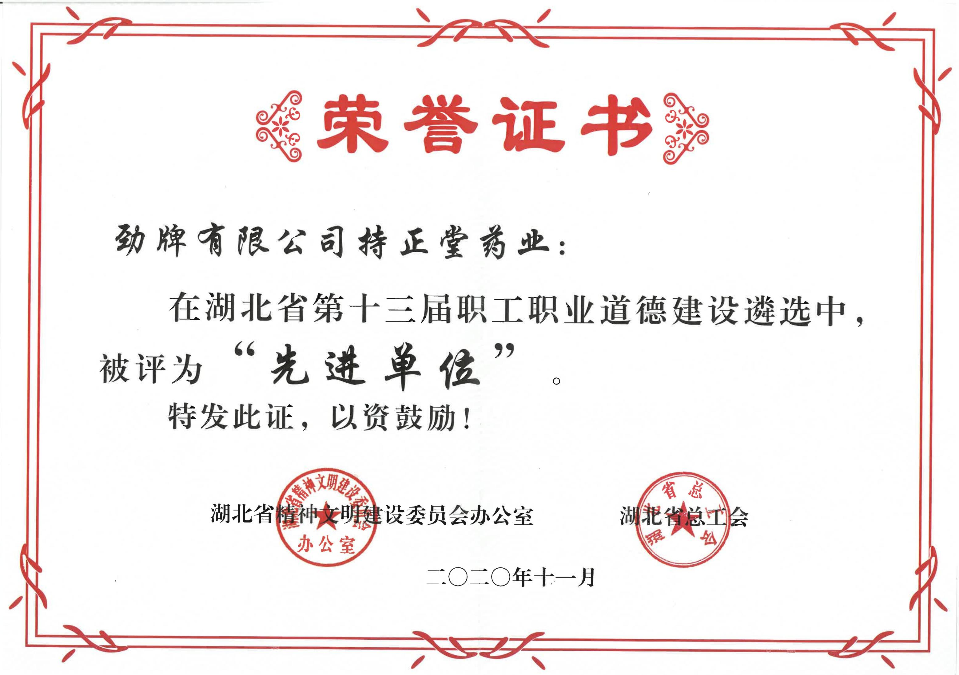 湖北省第十三屆職工職業道德建設“先進單位”