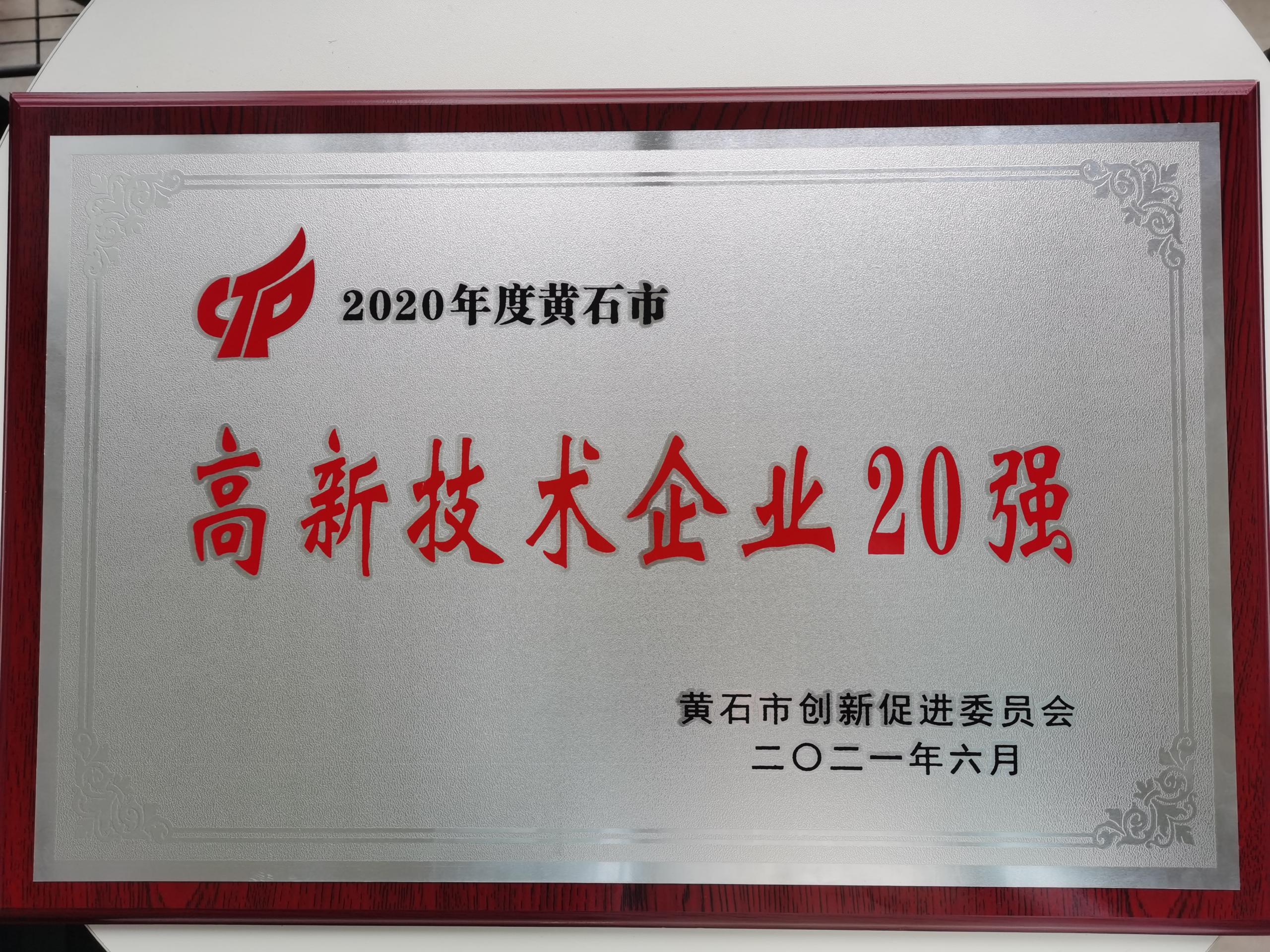 2020年度黃石市高新技術企業20強