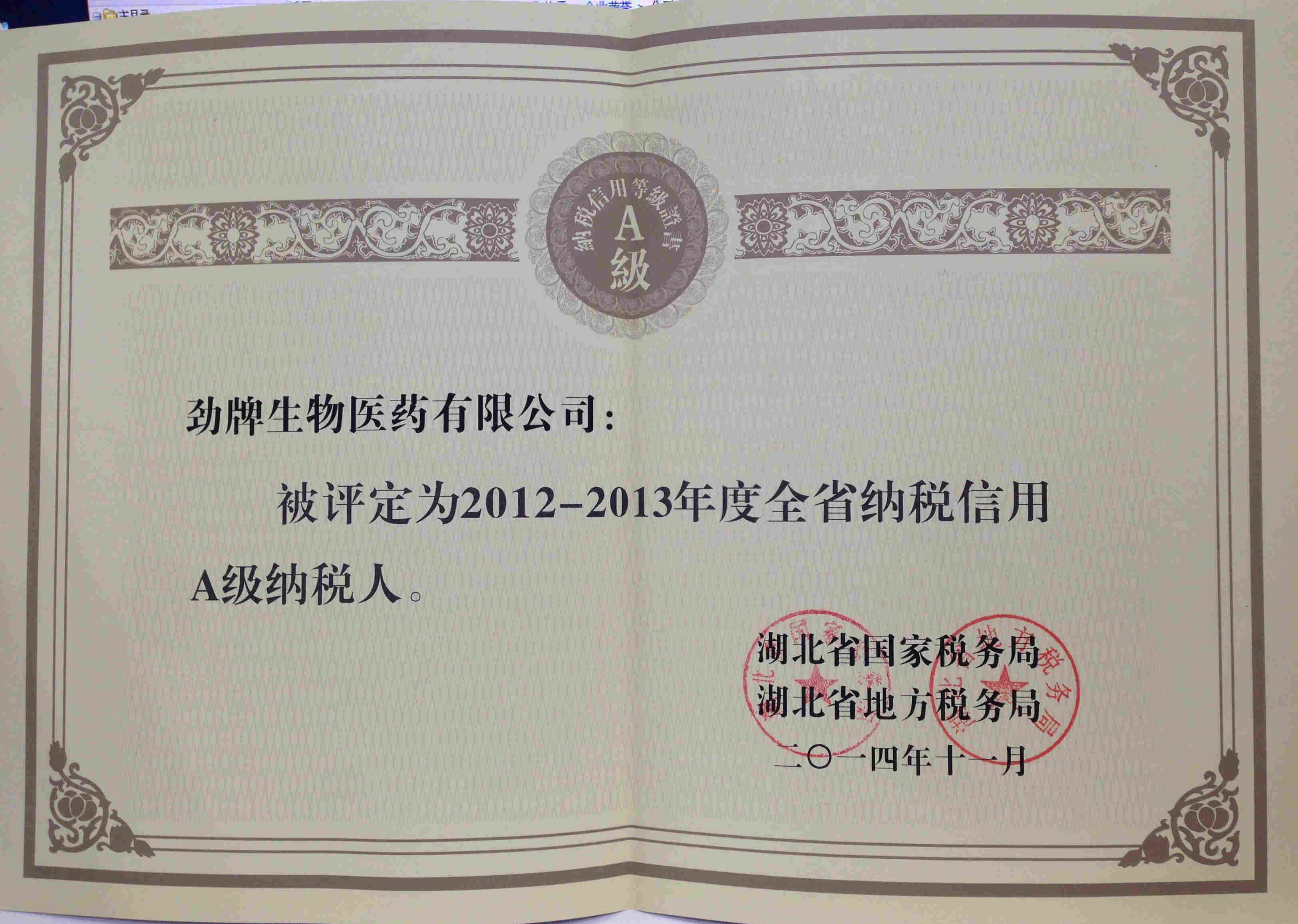 2012-2013年度全省納稅信用A級納稅人